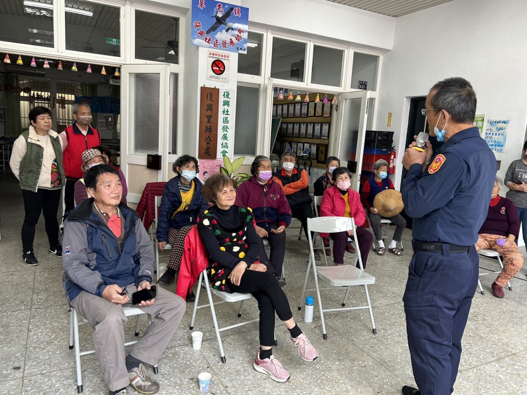 本縣邁入超高齡化社會,為防範高齡者事故,強化長輩交通安全意識,本局交通隊交安組持續於社區照護關懷據點、老人會及樂齡中心加強宣導各項交通安全觀念,針對騎電動代步車路權,微型電動二輪車罰則新規定如:騎乘微型電動二輪車頭戴安全帽、勿騎乘改裝車輛及預計113年底前應完成登檢領牌並投保強制險等規定加強宣導,期降低本縣高齡者事故傷亡率,於1月2日前往上林社區活動中心、1月4日前往玉峰社區、復興社區辦理高齡者社區宣導,受到長輩歡迎,宣導工作圓滿成功。