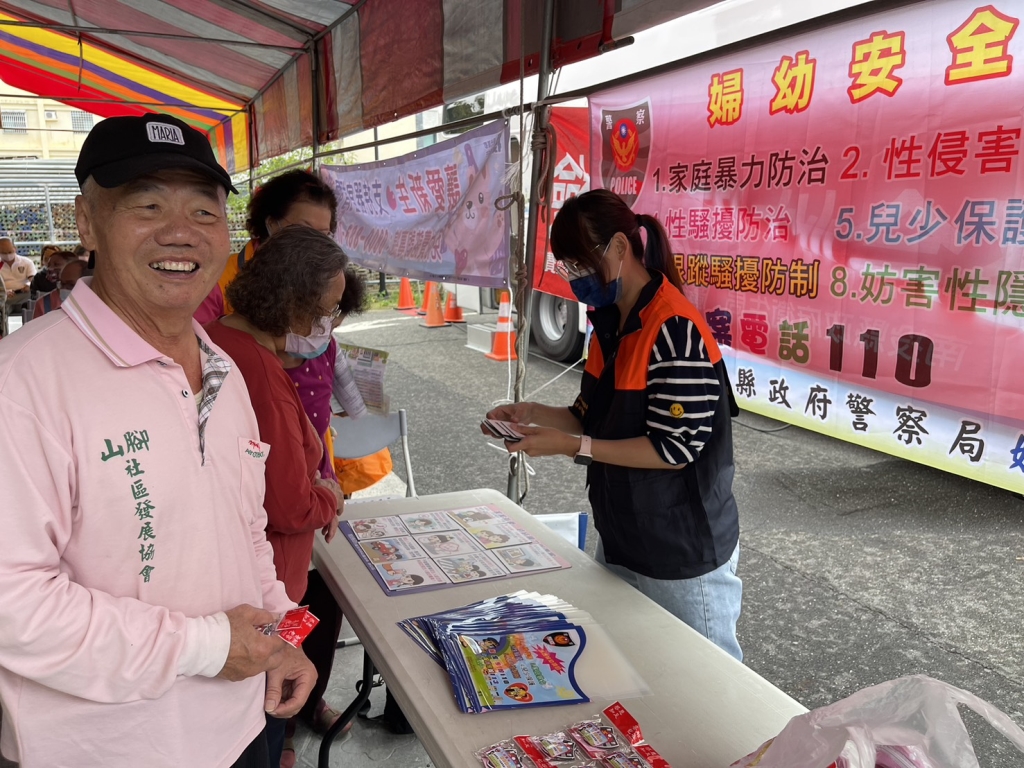 本局婦幼警察隊於本(114)年3月15日上午前往草屯鎮山腳里集會所,結合衛生所篩檢活動及草屯分局反詐欺宣導;過程中藉由小遊戲宣導婦幼常識,社區居民積極參與,反應熱烈,現場除了衛生所人員進行健康檢查、癌症篩檢外,另由草屯分局對居民加強反詐欺宣導,期許民眾除了身體健康,也要守護財產。