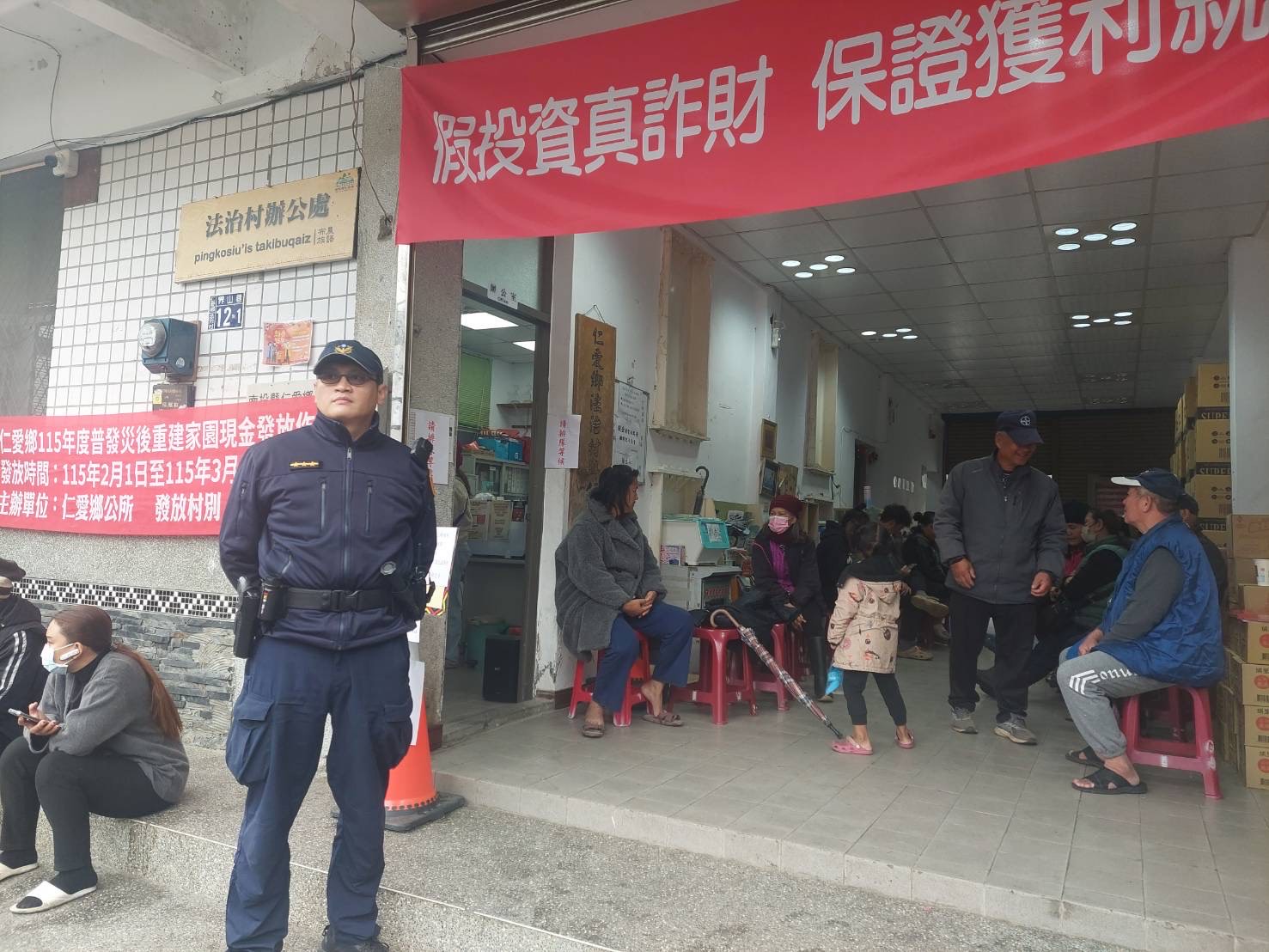為協助仁愛鄉公所辦理「災後重建家園現金普發」,仁愛分局主動規劃護鈔勤務,派遣警力隨同各村村長及村幹事前往金融機構提領現金,全程戒護、確保發放安全無虞。