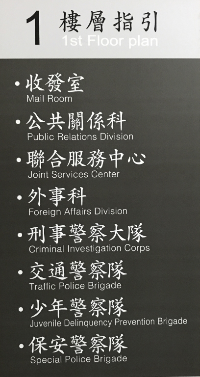 保防科、保安科、行政科、防治科、法制科、後勤科、開標室、會議室