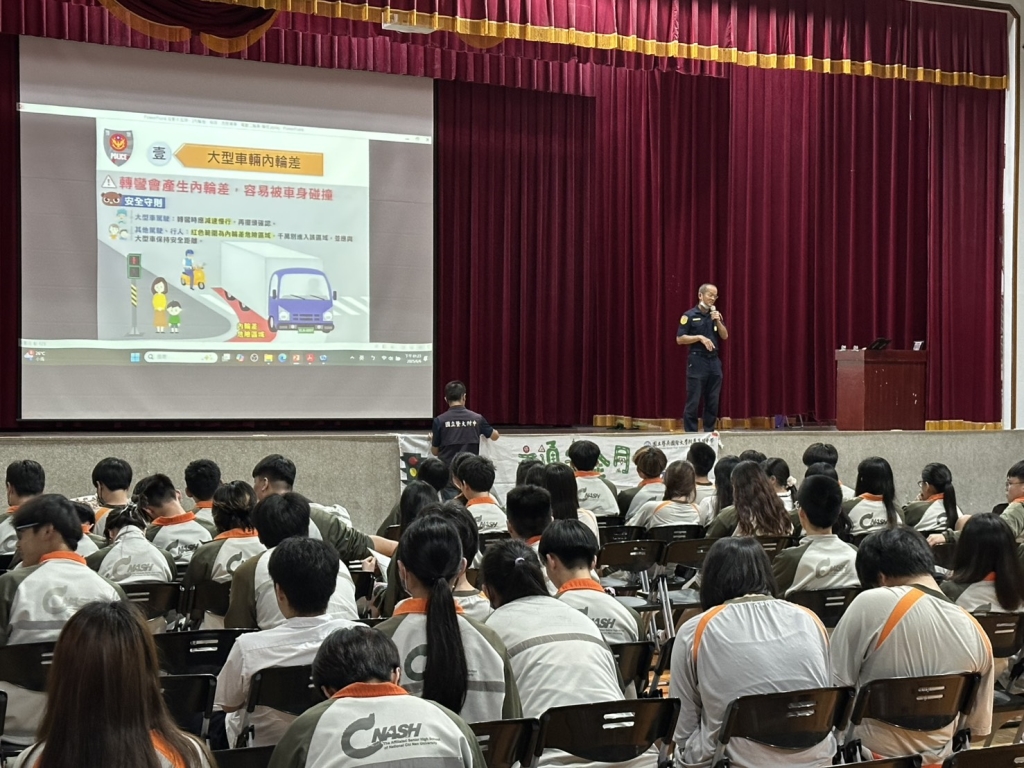 為加強青少年交通安全意識,南投縣政府警察局交通警察隊於6月7日前往國立暨南國際大學附屬高級中學辦理交通安全宣導講座,針對該校學生族群常見之無照駕駛行為與大型車內輪差事故風險進行重點宣導,參與人數計師生共約190人。