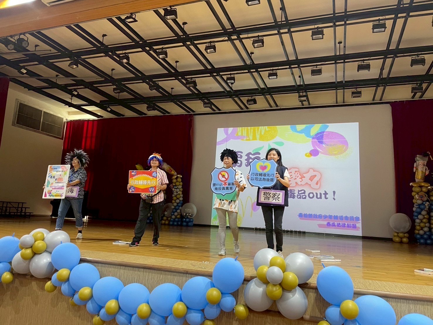 宣導先由本縣政府少年輔導委員會及少年志工隊春風法律劇團演出話劇「要玩不藥丸,新興毒品out!」,以少年容易誤觸的行為態樣融入多重情境,編寫劇本,透過現代流行歌曲帶著同學互動。