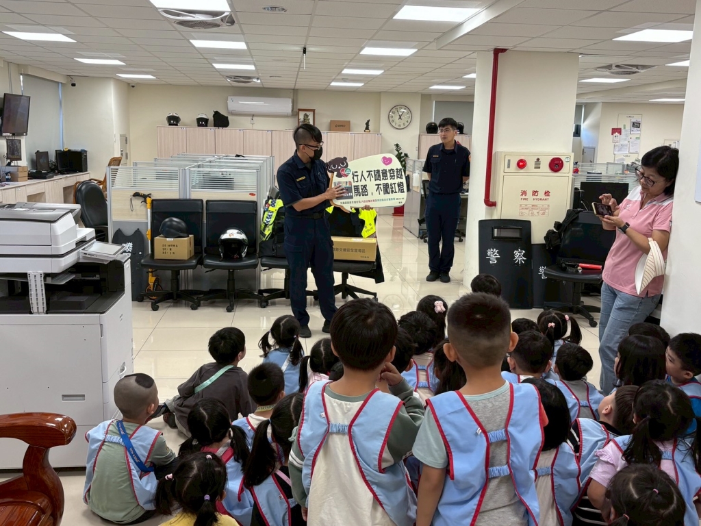 交通宣導部分以「車輛慢看停,行人安全行」為主軸,指導小朋友辨識紅綠燈、行走行人穿越道等基本道路安全觀念,提升交通安全意識;婦幼宣導則推廣由內政部警政署規劃製作之婦幼安全Youtube頻道「NPACareU 婦幼抱抱」,頻道裡囊括家庭暴力防治、性影像防治、跟蹤騷擾防制、性侵害防治、性騷擾防治、兒少性剝削防制、兒少保護、反霸凌及拒絕網路性別暴力等安全宣導教材,可供孩童們數位學習;反詐宣導則請孩童們提醒家長,近期「普發一萬」成為詐騙集團話題熱點,呼籲接到可疑電話或訊息時,務必撥打165反詐專線查證,別落入詐騙陷阱。