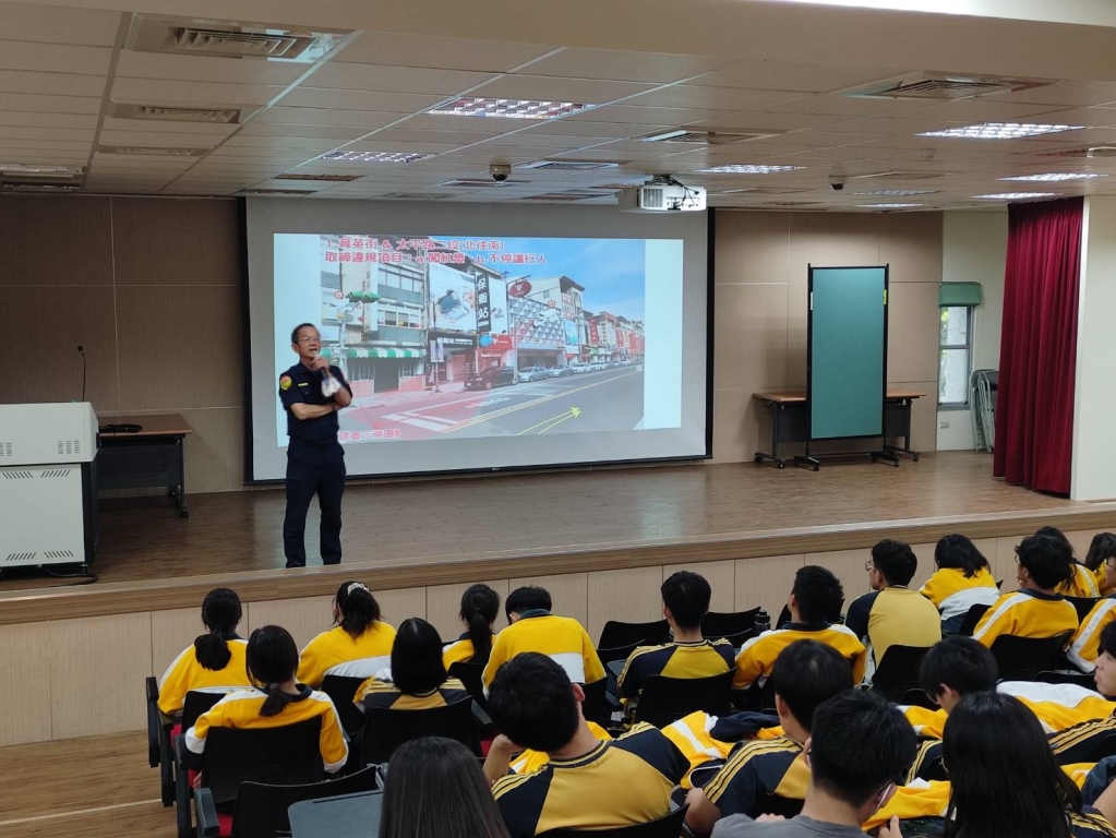 為強化青少年交通安全宣導工作,以降低年輕族群因不諳駕駛技術及交通安全觀念導致傷亡率,道安宣導團宣導小組針對高中強化宣導工作,於4月26日前往旭光高中宣導,參加人數師生共約260人;課程講座輔以事故行車影像加深同學對交通安全駕駛之興趣,以及有獎徵答活動,讓年輕族群從小就能獲知相關交安知識,進而降低事故發生;因應本縣新增多處科技執法設備,強化同學返家後,能與家人同步更新資訊,寓教於樂更能深植道安意識,活動圓滿成功。