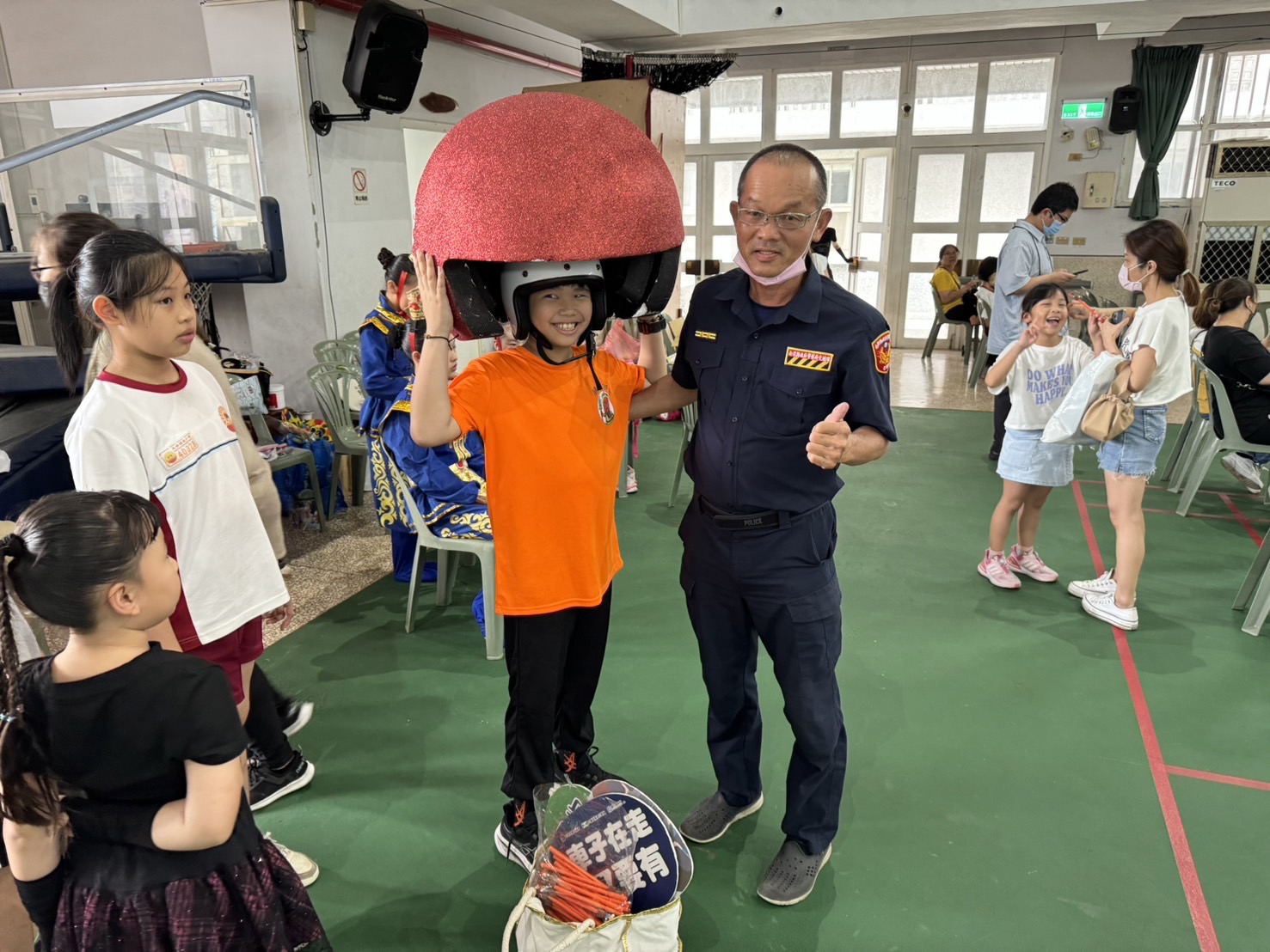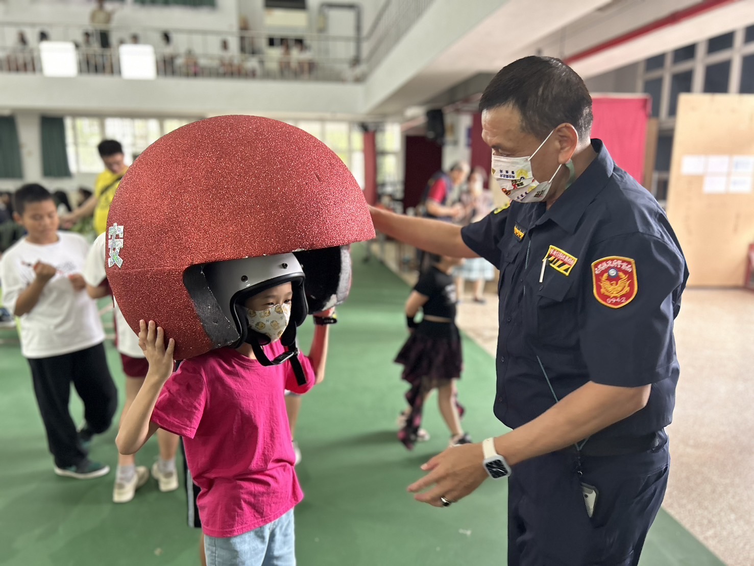 交安組組長與國小學童分享交安宣導品寓教於樂