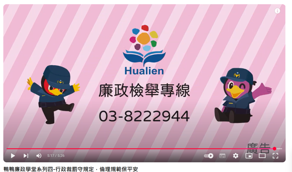 相關連結:花蓮縣政府鴨鴨廉政學堂Youtube平台