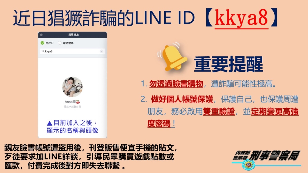 近日猖獗詐騙LINE ID
