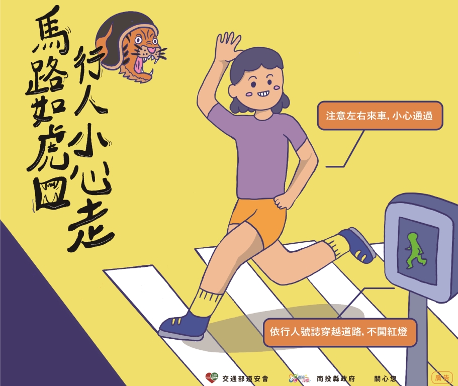 行人穿越道路時,應遵守相關號誌及管制指揮,並且要走在行人穿越道(斑馬線、枕木紋)上並依行人專用號誌(小綠人)指示穿越,往來車輛亦需遵守行車號誌管制並停讓行人,本局持續宣導行人過馬路應注意往來人車,切勿低頭滑手機,並且注意號誌變換,切勿隨意穿越道路。