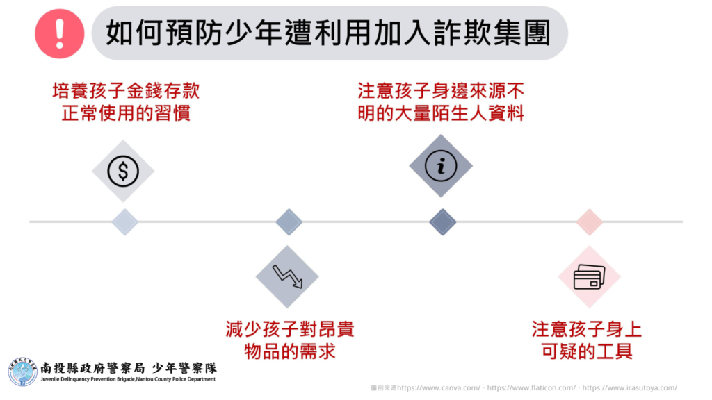 (一)培養孩子金錢、存款正常使用的習慣:避免詐騙集團以短期大量金錢引誘少年賺取佣金。