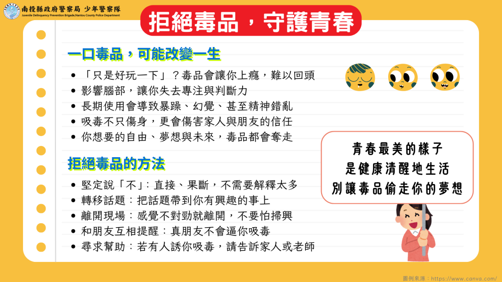 尋求幫助:若有人誘你吸毒,請告訴家人或老師