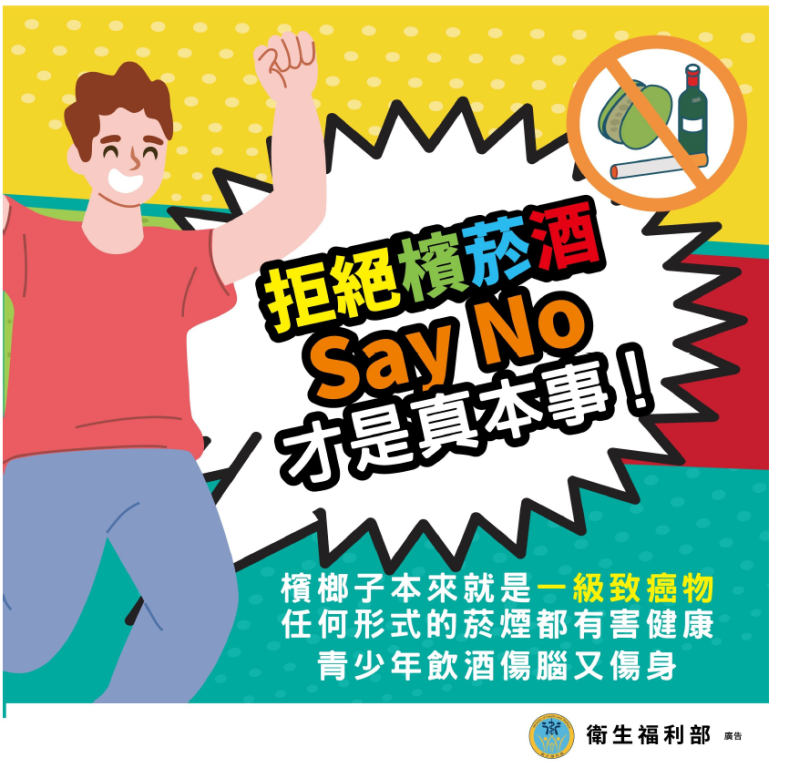 檳榔子本來就是一級致癌物,任何形式的菸煙都有害健康,青少年飲酒傷腦又傷身