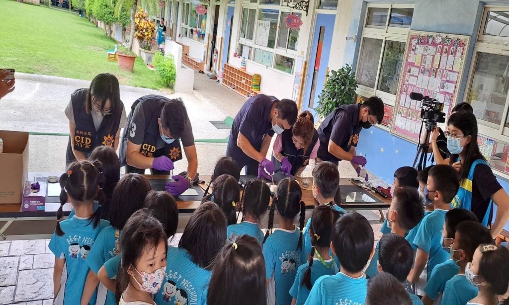本分局結合轄內貝斯特幼兒園於8月11日上午共同辦理「小小警察體驗營」,活動內容為響應「交通安全車輛慢看停、加強行人路權」、「防詐宣導」、「婦幼安全」、「基本防身術」「警用車輛及裝備介紹」、「刑事指紋採證體驗」,活動由分局長胡淑淨率員警18名及幼兒園負責人施銘芳、園長謝美珍等全體師生130名共同參與,讓小朋友對警察工作有不同的認識與體驗,提供暑假期間一個優質教學活動。