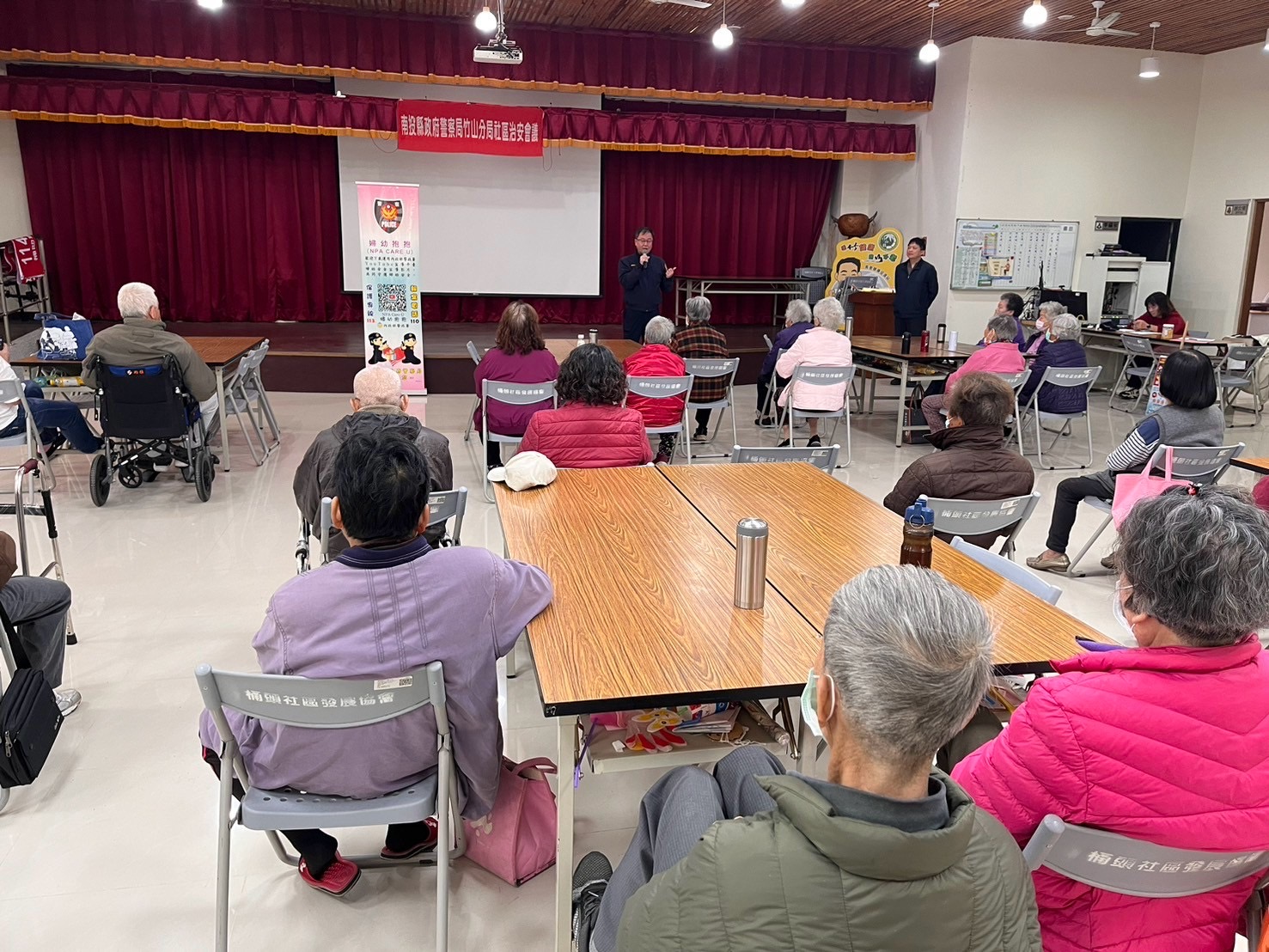 為多方傾聽民眾對治安交通建議及適切回應民眾需求,竹山分局於日前至桶頭社區辦理「社區治安會議」,藉此會議分享轄內最新治安、交通現況,並進行反詐騙、交通、婦幼安全等宣導相關事宜,以提升居民自我防護能力及警民合作的意識。