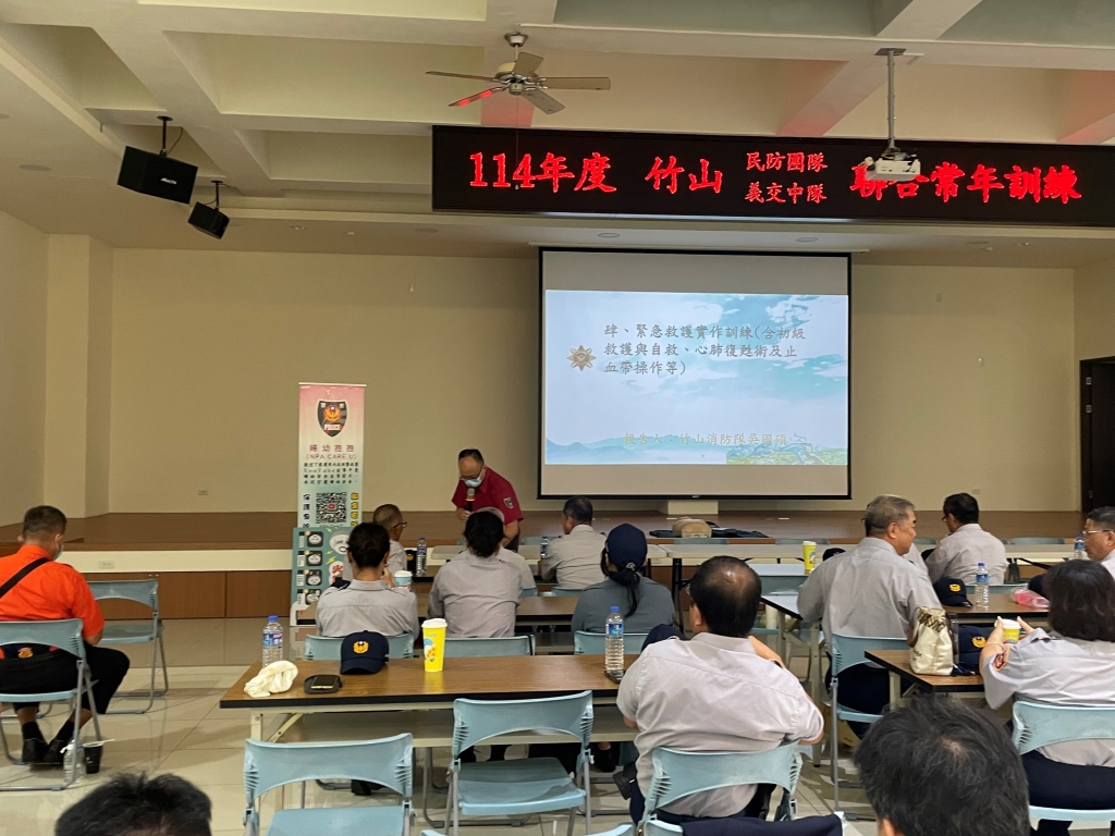為強化民防及交通義勇警察人員的協勤技能與專業知識,南投縣政府警察局竹山分局於6月13日,在分局禮堂舉辦「114年民防竹山中隊及交通義勇警察竹山中隊常年訓練」。