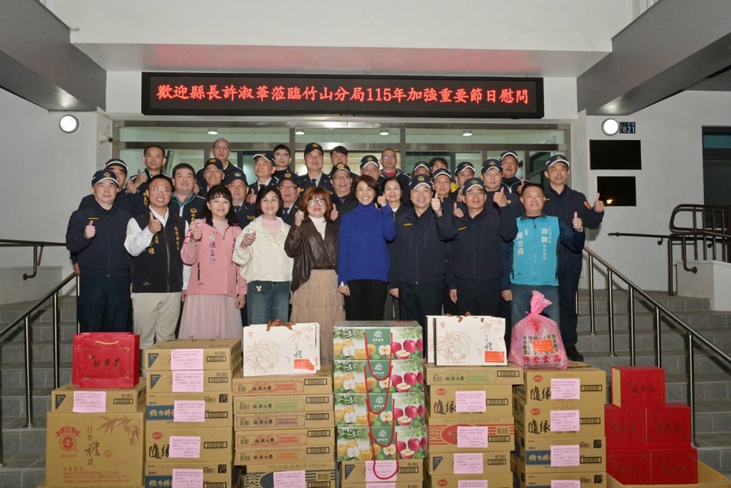 長謝宗宏陪同下至竹山分局實施慰問並致贈慰問品,縣長表示:農曆春節連續假期即將到來,為展現政府運作與服務沒有空窗期,讓民眾安心、快樂過好年,執勤員警及協勤民力犧牲春節假期與家人團聚時間,全力投入維護治安及交通疏導工作,讓南投縣縣民可以過個好年。