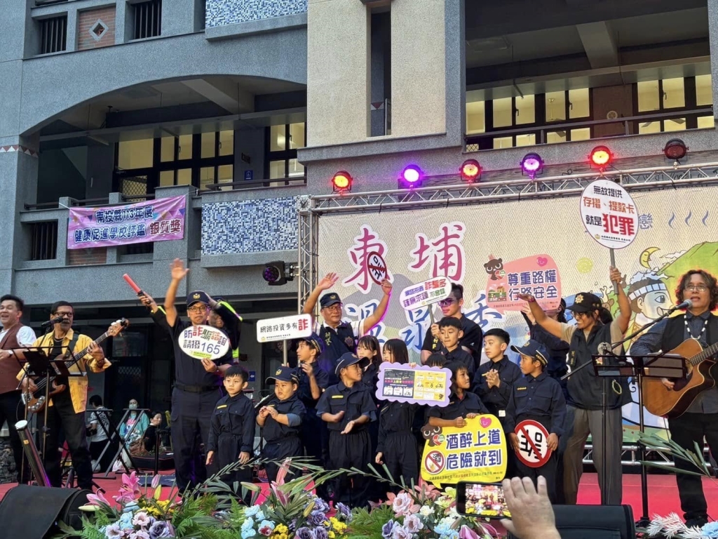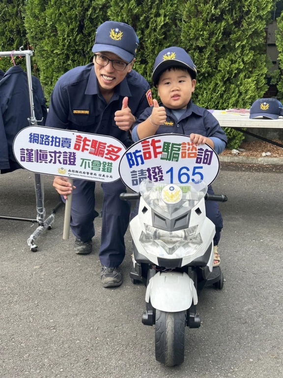 東埔溫泉季活動於23日熱鬧舉行,有樂團、藝人表演、穿浴袍體驗、持火把踩街等活動,吸引近千名遊客前來参加提升在地觀光,信義警分局也特別在東埔派出所前設攤宣導,提供小警察制服、小哈雷重機車讓小朋友們體驗拍照,還有12位小小警察手持反詐宣導牌一起踩街,並登上舞台與樂團同樂,更向在場遊客宣導「165反詐騙」、「冷靜想想不要受騙」,透過小小警察超萌表現,增宣導效果。
