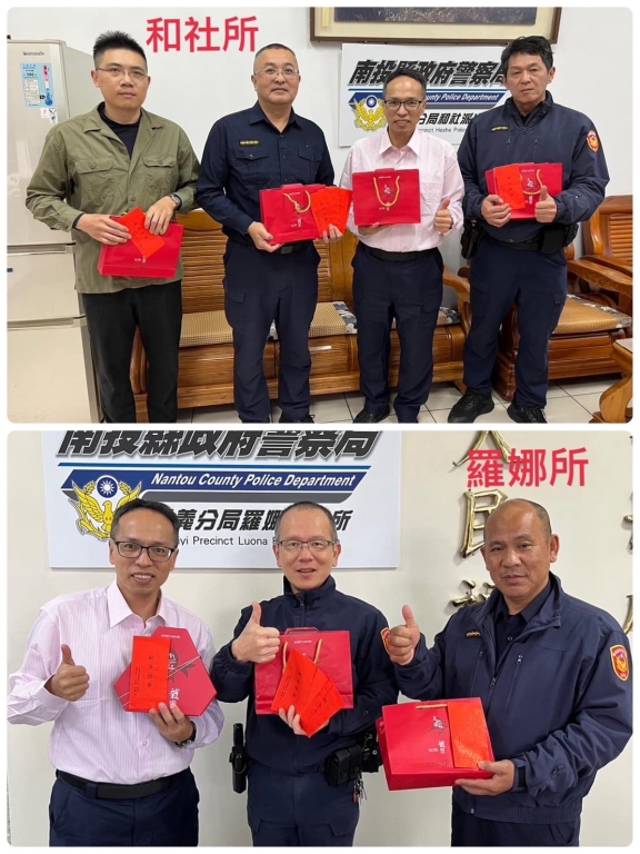 農曆過年前最後一個上班日,分局長邱逸樵特別至各組、隊、中心,還有11個派出所慰勉同仁執勤辛勞,頒贈每位同仁新春紅包還有伴手禮,除祝賀新年快樂外,也期勉接下來的年假期間,信義警務必要做好治安平穩、交通順暢、還有為民服務工作,讓民眾都能開心、平安過好年。
