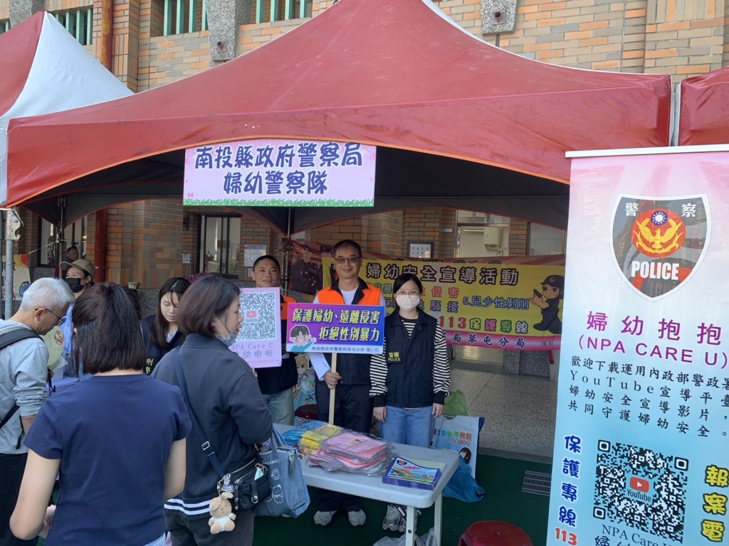 向現場民眾宣導婦幼安全及“婦幼抱抱”頻道