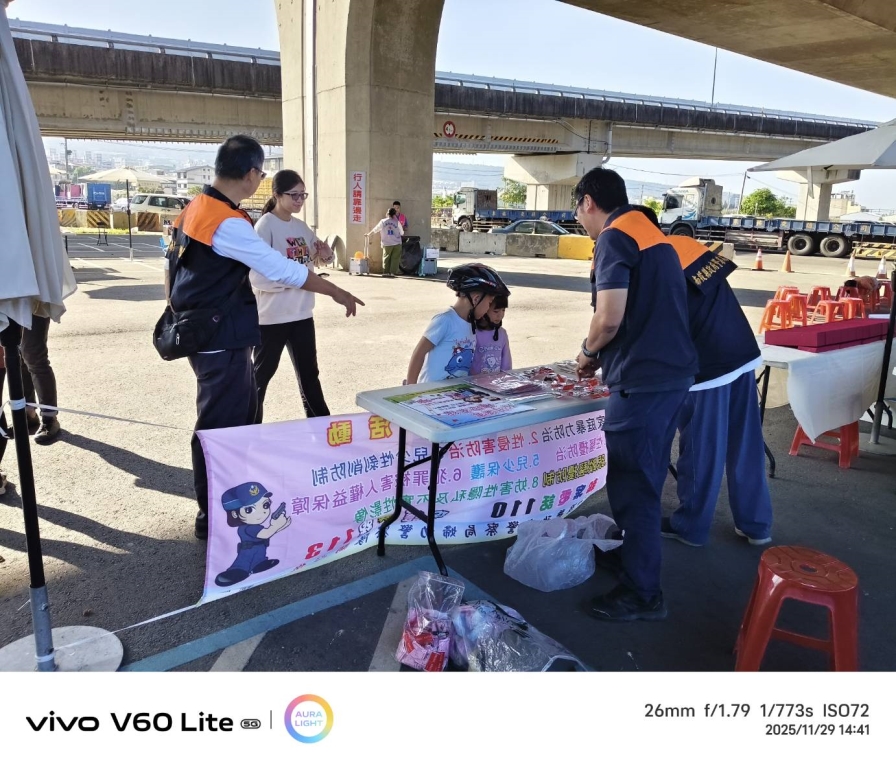 南投市公所於11月29日、30日於國道3號南投交流道下方舉辦「這村 這市」市集,本局婦幼隊很榮幸受邀到場進行婦幼安全宣導。現場除了文創美食市集,還有滑步車競賽。婦幼隊同仁與現場小朋友進行拼圖及婦幼常識問答,完成遊戲者皆獲得小贈品,另外並向家長們介紹警政署「婦幼抱抱」頻道,專門以短片宣導各類婦幼主題,希望能讓婦幼安全知識融入日常生活。