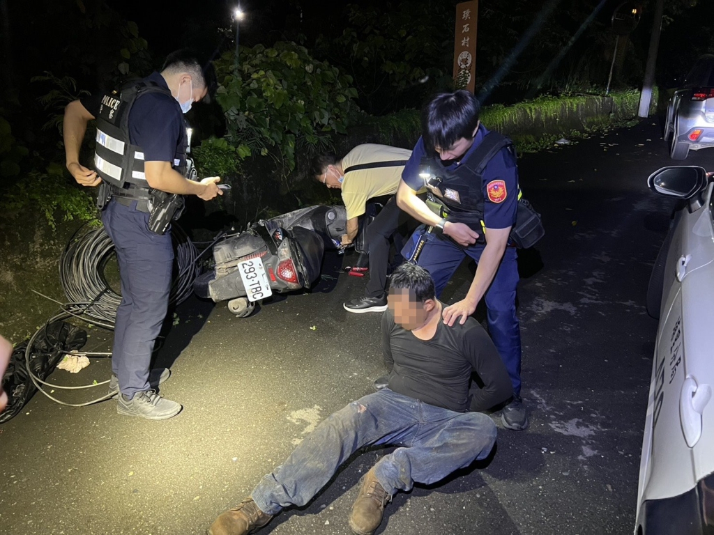 幸賴埔里警分局員警多日來穿梭該地區而熟悉地形,運用地物與攔截技巧,最終成功將車輛於橋頭攔停,當場查獲鄧姓男子,並在車上起出一把電纜剪及一捆重達54.8公斤、長約210公尺的電纜線,經警方初步調查後,確認該批電纜係於稍早自草屯鎮中和路某處竊得。