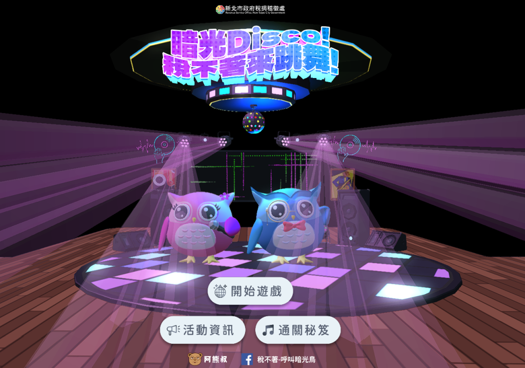 新北市政府稅捐稽徵處於114年7月7日至9月5日舉辦「暗光Disco!稅不著來跳舞!」網頁互動遊戲活動。