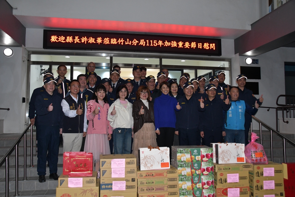 南投縣縣長許淑華、縣警局長謝宗宏等,為慰勉員警、義警、民防、義交、巡守隊等執(協)勤人員工作辛勞,於昨(9)日夜間,至竹山警察分局進行慰問,由分局長許軒鳴全程陪同前往轄區各分駐(派出)所致贈慰問品,感謝所有執(協)勤人員為維護地方治安、交通的辛勤付出,全力營造平安的環境,讓所有民眾都能夠歡愉的享受春節假期。
